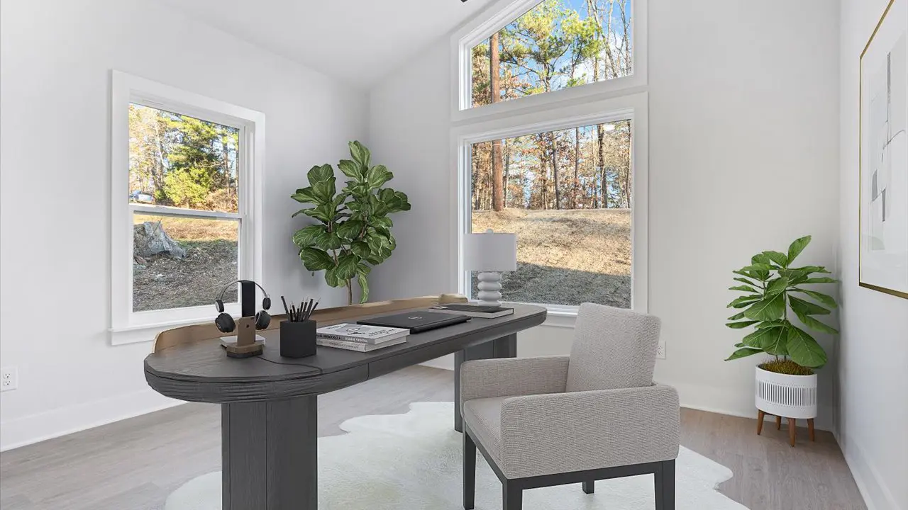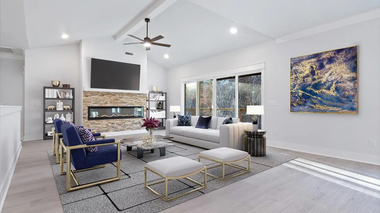 Modern Craftsman with a transitional interior style. The design integrates open layouts, neutral palettes, matte black hardware, vaulted ceilings, and clean lines to offer a bright and spacious feel throughout.