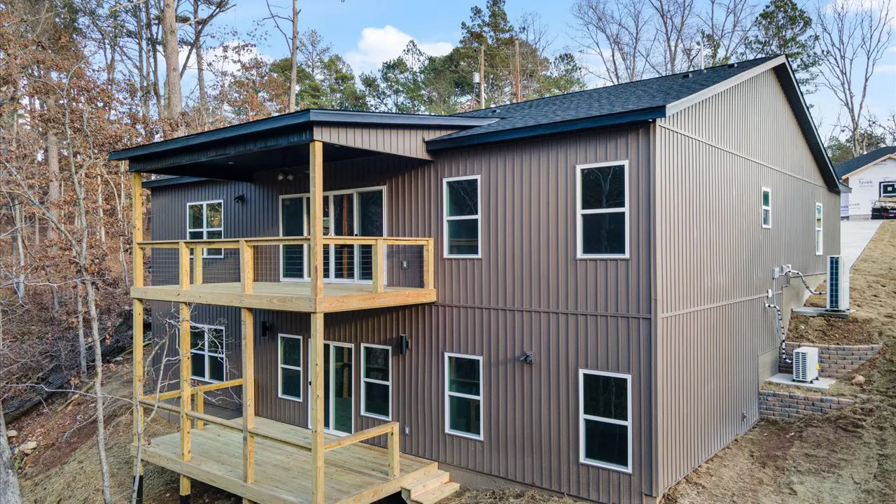 A modern custom-built home nestled in the wooded surroundings of Bella Vista, AR. This residence was designed for both functionality and style, featuring high ceilings, natural light, and a seamless blend between contemporary design and natural elements.